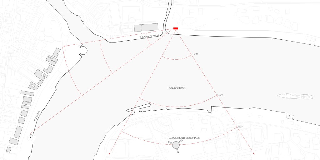 作为滨江岸线上规划的一处市民服务驿站,项目基地被选定于上海市虹口北外滩国客码头第一分段西侧台阶的侧方。选址不远处便是新落成的世界会客厅,近处亦有独树一帜的虹口滨江灯塔。从此处眺望,更是可以同时饱览代表上海发展的浦东陆家嘴建筑群和上海历史底蕴的外滩历史建筑群。