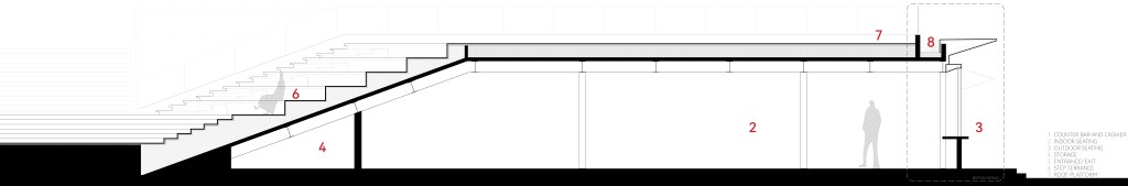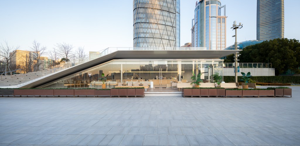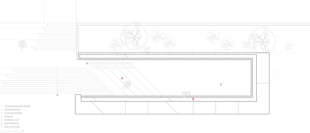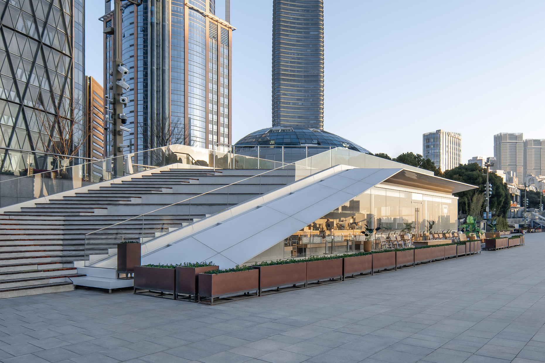 The massing concept is to extend the landscape steps on the west side, and then “lift” the end of the edge. Therefore, the functional space below and the activity platform above are naturally formed. After that, part of the steps was merged to be a large one facing the southwest, which can also be used as a seating area. Ultimately, the building is regard as a “viewfinder” on the Huangpu River.